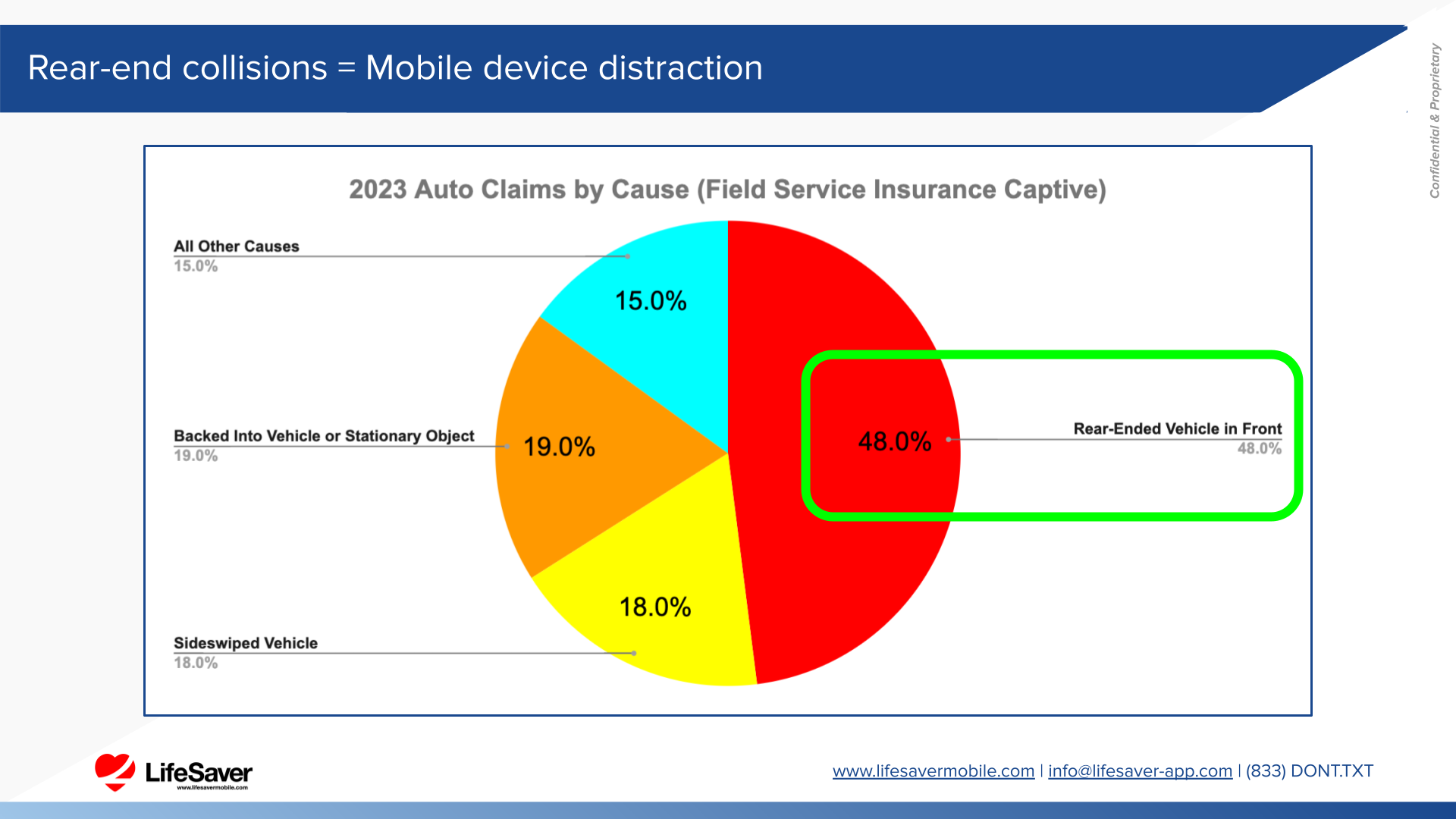 Insurance claims data indicate that distracted driving is the #1 cause of vehicle collisions.1